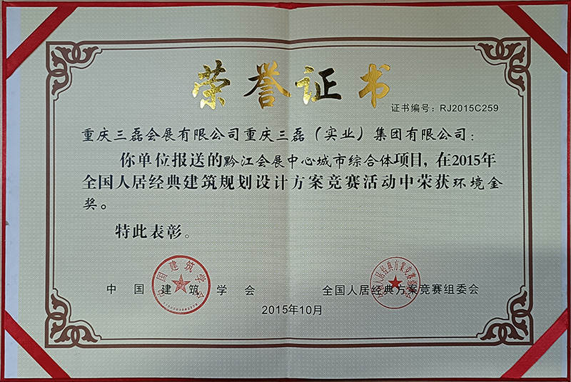 ???????黔江會展中心城市綜合體榮獲2015年全國人居金典環境金獎